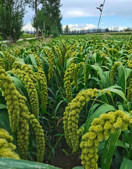 4. 避免重茬或迎茬,播前做好种子消毒,用种子包衣剂包衣效果好,在播种前用35%的甲霜灵及50%的拌种灵拌种,以种子量的0.3%拌种,防治效果达80%以上。3~5叶期加强田间管理及时间苗、定苗、中耕除草,以利于蹲苗。喷施除草剂选择在24小时内无风、无雨天气进行。注意防治谷子粟叶甲、钻心虫和黏虫。后期注意抗旱排涝。谷子成熟后及时进行收获。