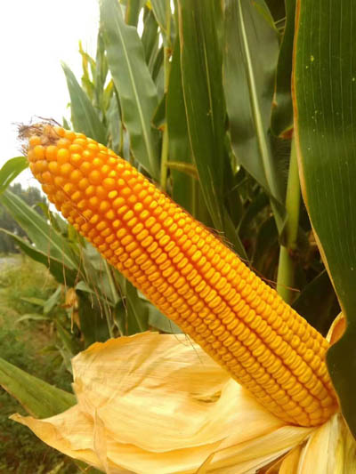 出苗至成熟125天,幼苗叶鞘浅紫色,叶片绿色。颖壳绿色,雄穗一级分枝5-7个,花药黄色,花丝黄色,茎绿色。株型半紧凑,株高286厘米,穗位高106厘米,成株叶片数19。果穗长筒型,穗轴红色,穗长20.8厘米,穗粗5.2厘米,穗行数16-18,行粒数42.5,单穗粒重209.5克,出籽率84.5%。籽粒黄色、马齿型,百粒重35.5克。接种鉴定,感大斑病(7S),中抗弯孢叶斑病(5MR),中抗丝黑穗病(7.4%MR),中抗茎腐病(28.6%MR),抗玉米螟(3.2R)。籽粒含粗蛋白10.71%,粗脂肪3.55%,粗淀粉74.23%,赖氨酸0.28%。一般平均亩产在900公斤以上。